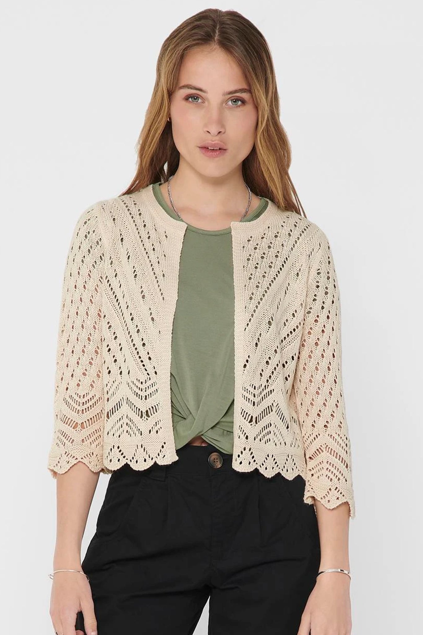 - Scalloped hem.