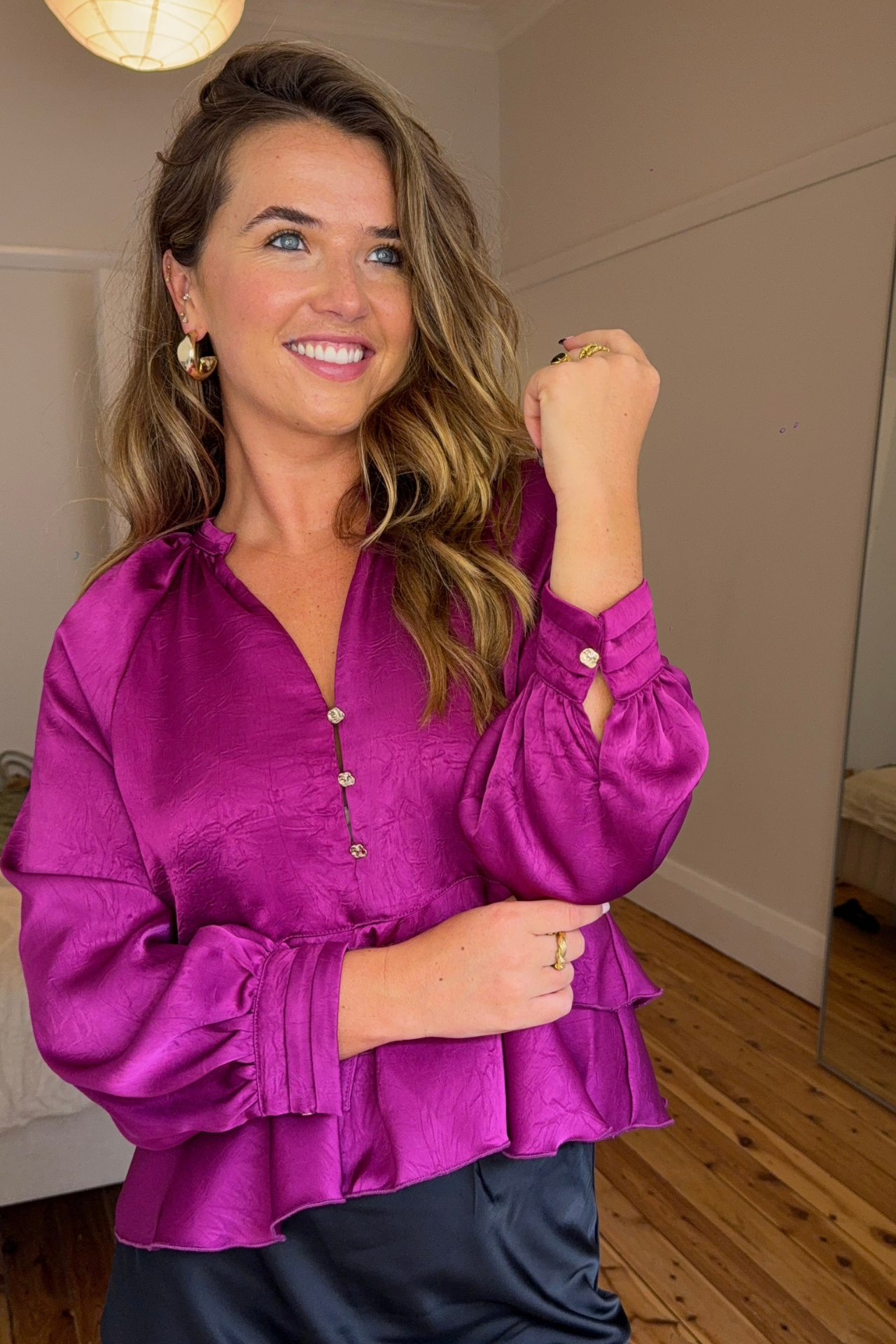 - Front button and cuff detail.