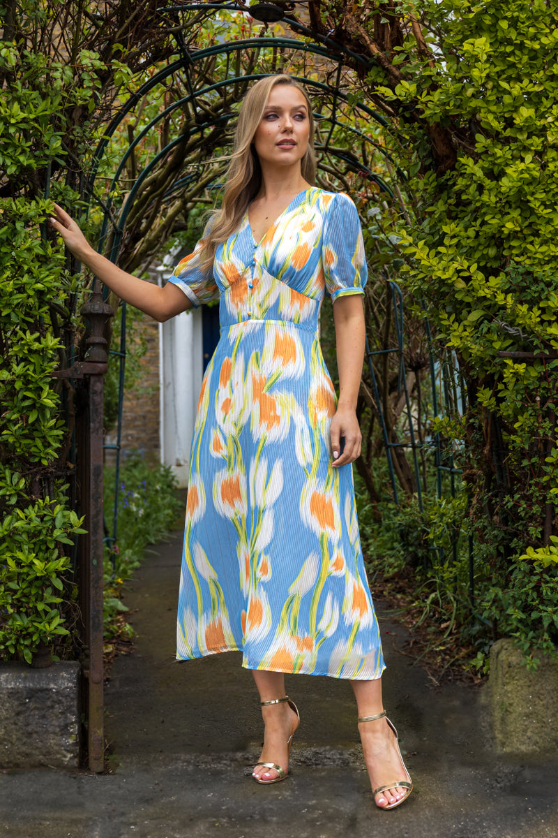 Lily Sweetheart Blue & Green Printed Midi Dress