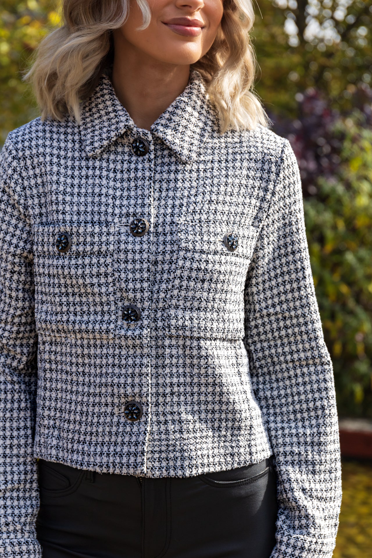 - Button front closure.